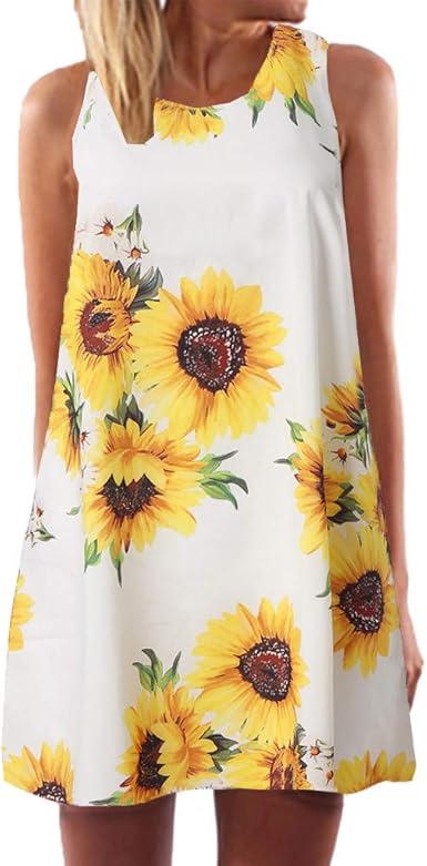 Aini Vestido Sin Mangas Estampado Ropa De Verano De Gran Tamano Para Mujer Vestido De Girasol Chaleco De Cuello Redondo Falda De Flores Vestidos Cortas De Fiesta Vestidos De Mujer Floral Bohemia