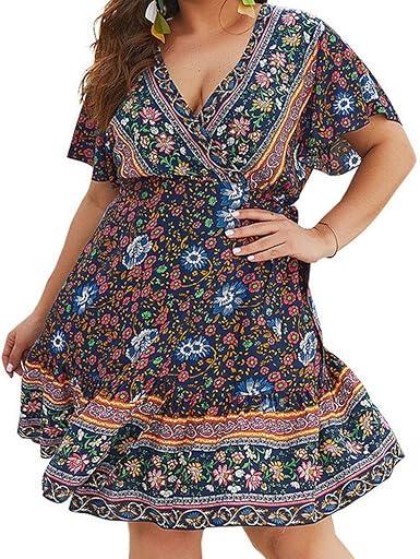 Vestido De Verano De Gran Tamano Con Cuello En V Para Mujer Estilo Bohemio Amazon Es Ropa Y Accesorios