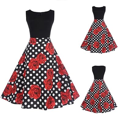 Amazon Com Jushye 2018 Nueva Para Mujer Vestido Sin Mangas Senoras Rose Floral Elegante Te Vintage Hepburn Vestido De Vestido Para El Dia De San Valentin Clothing
