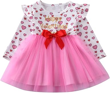 Greetuny Vestido De Princesa De Manga Larga Para El Dia De San Valentin Con Nudo De Lazo Para Ninas Amazon Es Ropa Y Accesorios