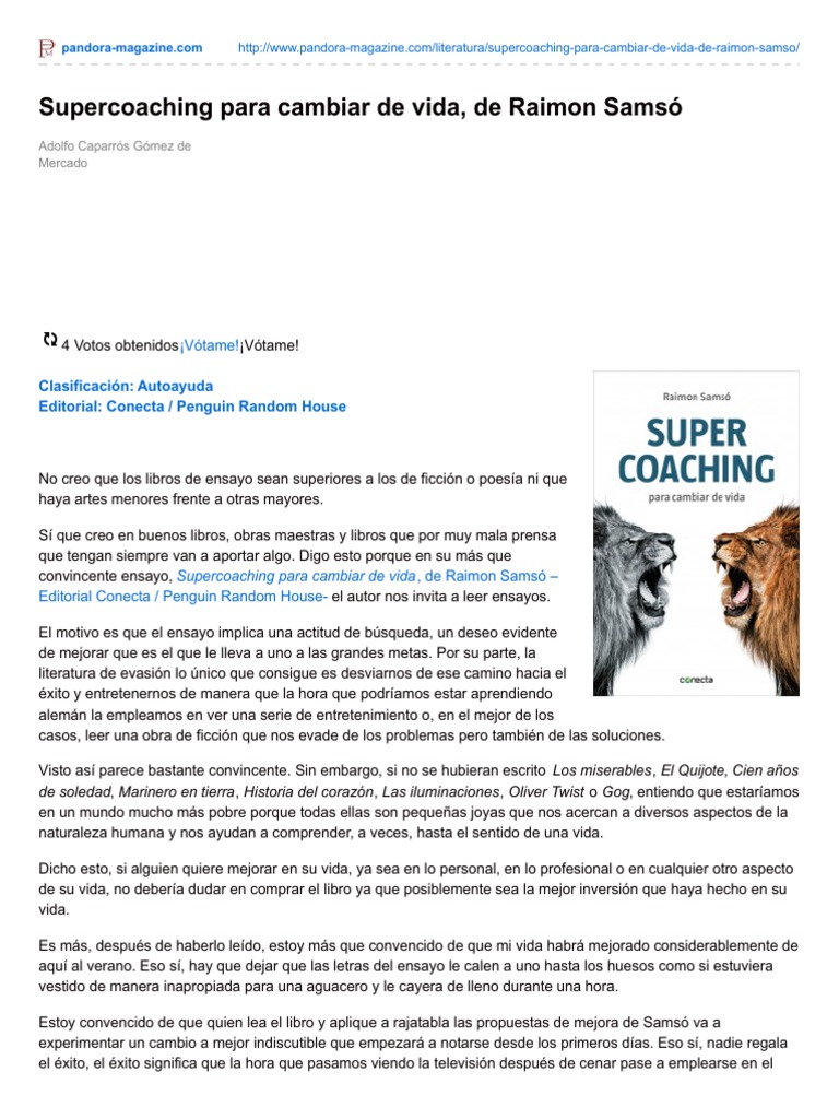 Pandora Magazine Com Supercoaching Para Cambiar De Vida De Raimon Samso Ensayos Desarrollo Personal