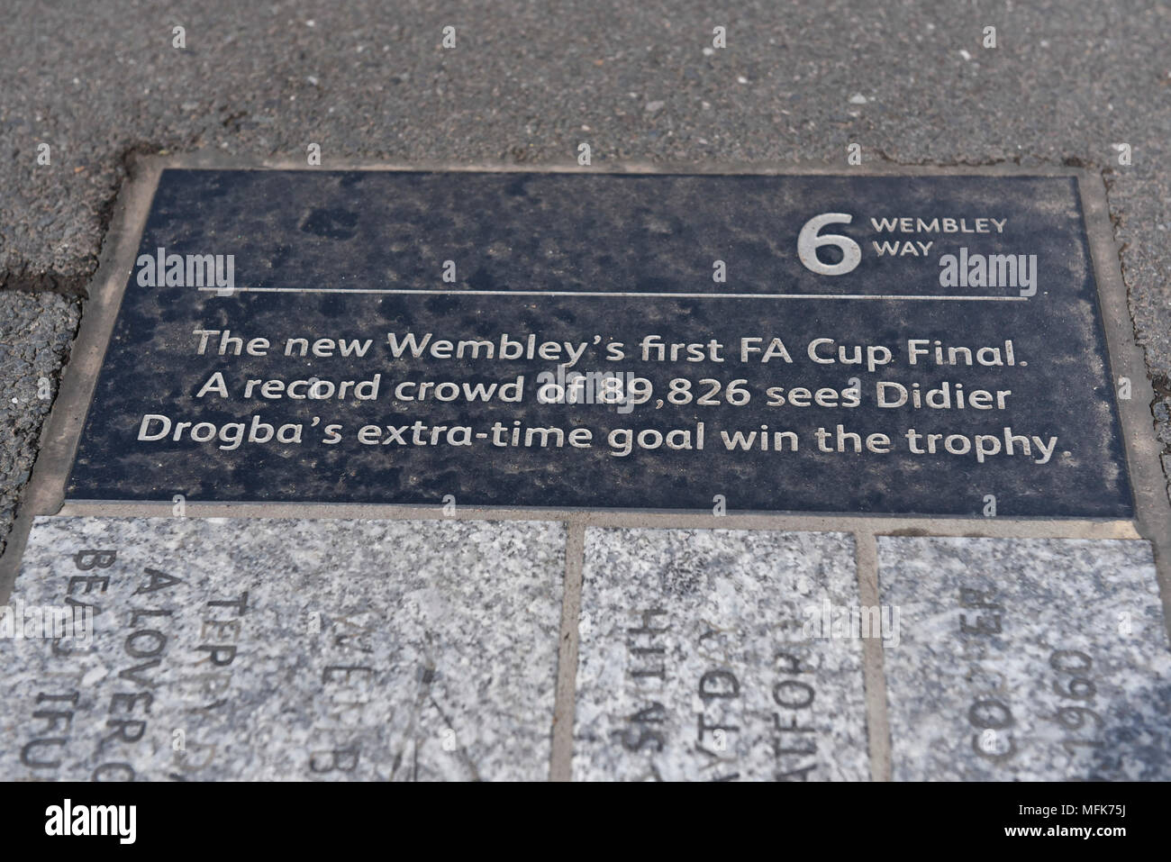 Londres Reino Unido 26 De Abril De 2018 Una Placa Conmemorativa Fuera Del Estadio De Wembley
