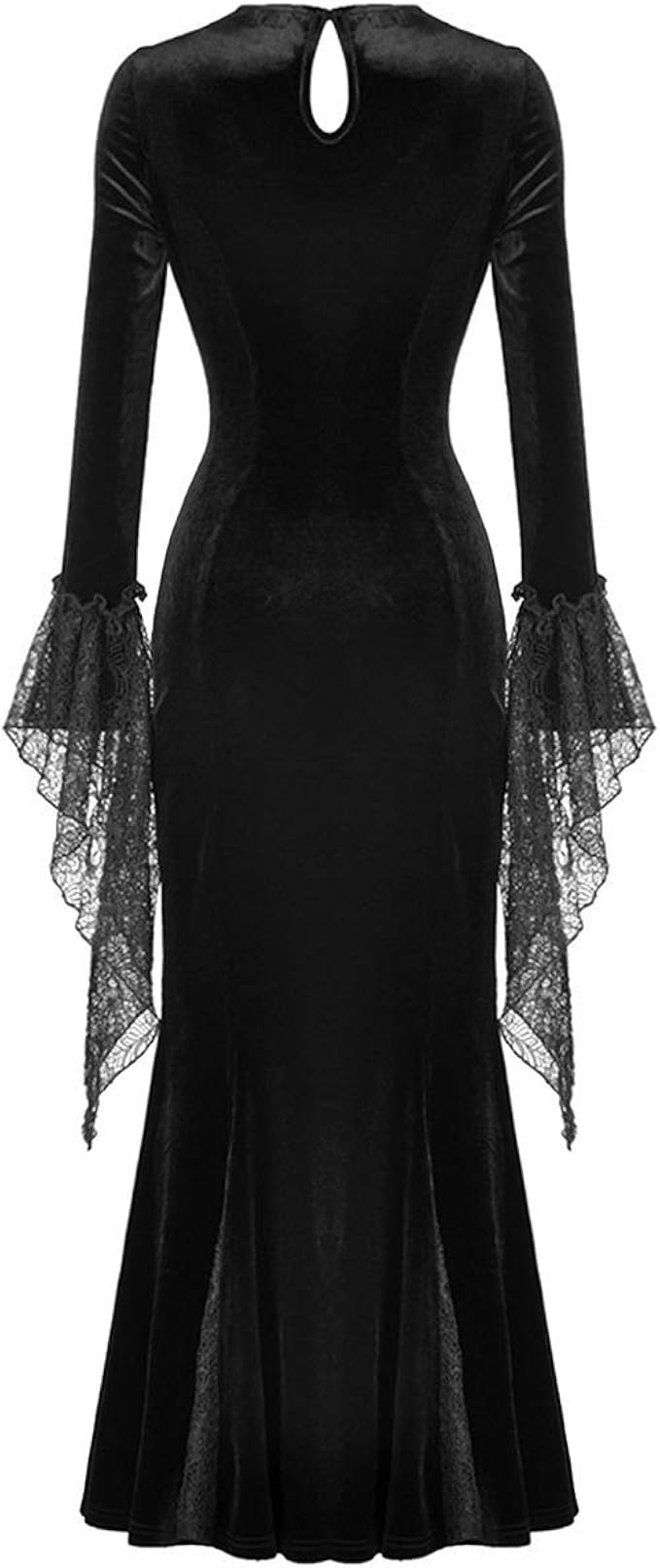 Oscuro En El Amor Vestido Gotico Largo Negro De Terciopelo De Encaje Vampiro Bruja Morticia Funeral Amazon Es Ropa Y Accesorios