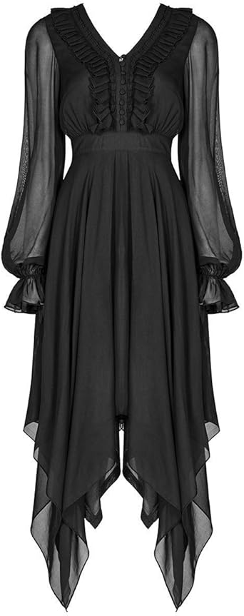 Punk Rave Gotico Victoriano Noche Midi Vestido Negro Chifon Steampunk Bruja Vintage Eduardiano Funeral Luto Opq 545 Amazon Es Ropa Y Accesorios