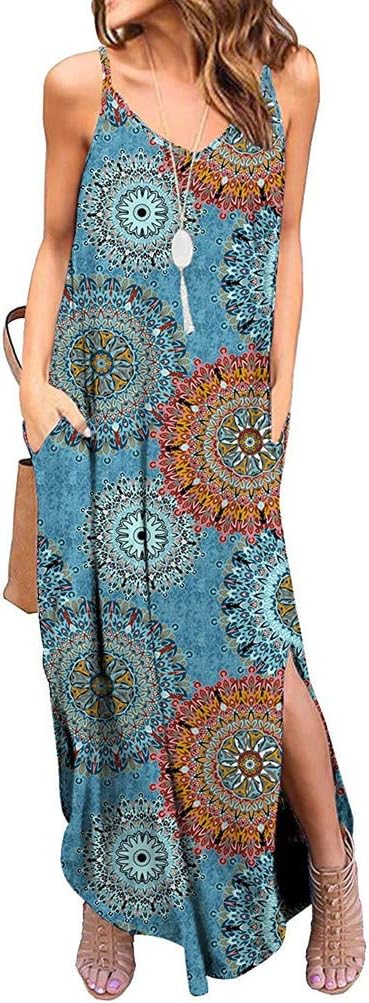 Toponly Vestido Largo Sin Mangas Para Verano Playa Bohemio Sin Mangas Con Tirantes Para Vestir Con Diseno De Flores Talla Grande Vestido De Fiesta Con Bolsillo Amazon Es Instrumentos Musicales