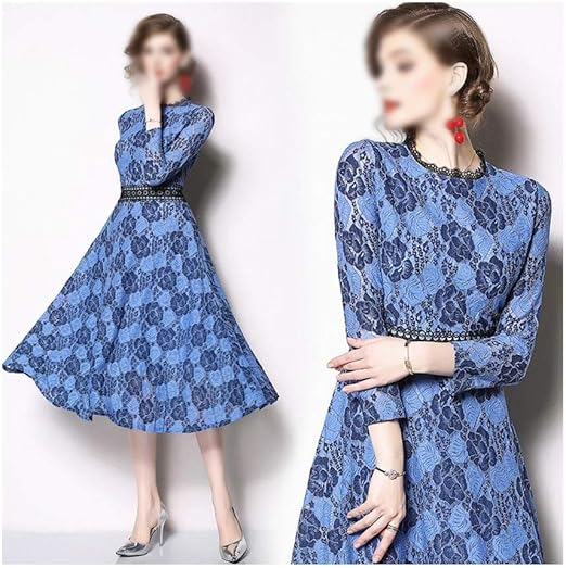 Xunhang Vestido De Encaje Calado De Flores De Primavera Y Otono Vestido De Mujer For Funeral Color Azul Size S Amazon Com Mx Hogar Y Cocina