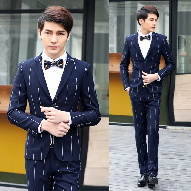 Chaqueta Chaqueta De Rayas Traje De Boda Para Hombre Estilo Coreano Vestido De Esmoquin Chaqueta Disenos Del Azul Real De Los Pantalones Del Traje Pantalon Homme Xy13 En Trajes De Ropa Y