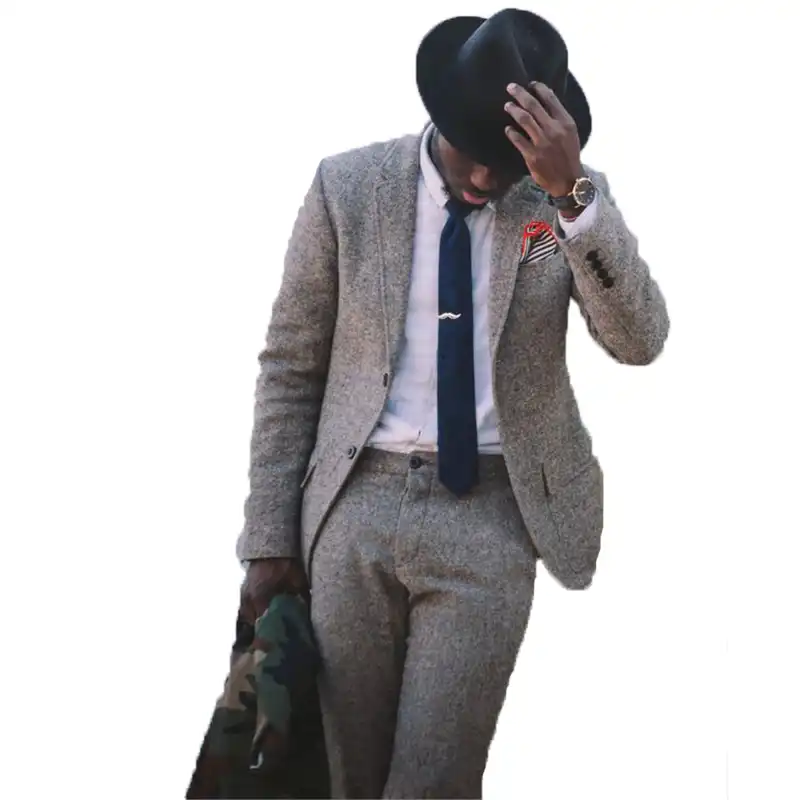Trajes De Hombre Gris Para Boda Esmoquin De Tweed Vestido De Boda Vestidos De Graduacion Traje De Negocios Traje De Dos Piezas Chaqueta Pantalones Trajes Aliexpress