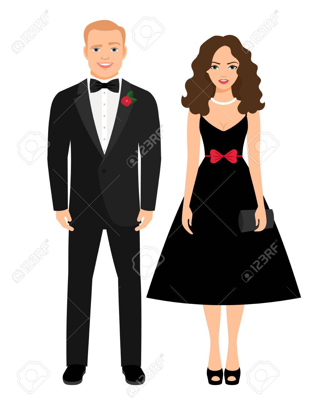 Traje De Noche Para Ocasiones Especiales Bella Joven En El Vestido Negro Y Esmoquin Ilustracion Vectorial Ilustraciones Vectoriales Clip Art Vectorizado Libre De Derechos Image 74163184