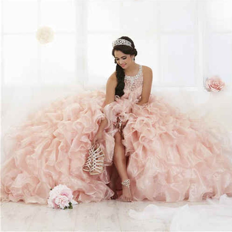 Compre Vestidos De Quinceanera Con Champan 2018 Dulce 16 Anos Encaje Cristales Con Cuentas Vestido De Fiesta Cuello Alto Vestido De Fiesta Para Fiesta De Quinceanera A 114 74 Del Elegantdress009 Dhgate Com