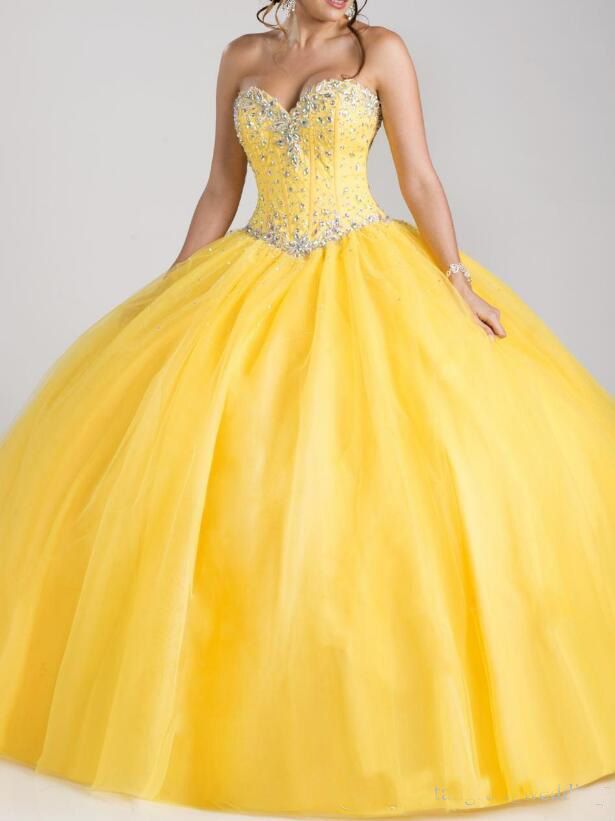 Compre Vestido De Fiesta Amarillo Vestidos De Quinceanera 2019 Sweetheart Sweet 16 Quinceanera Con Cristales Vestidos De Fiesta De Graduacion Con Cuentas A 119 03 Del Veralove Forever Dhgate Com