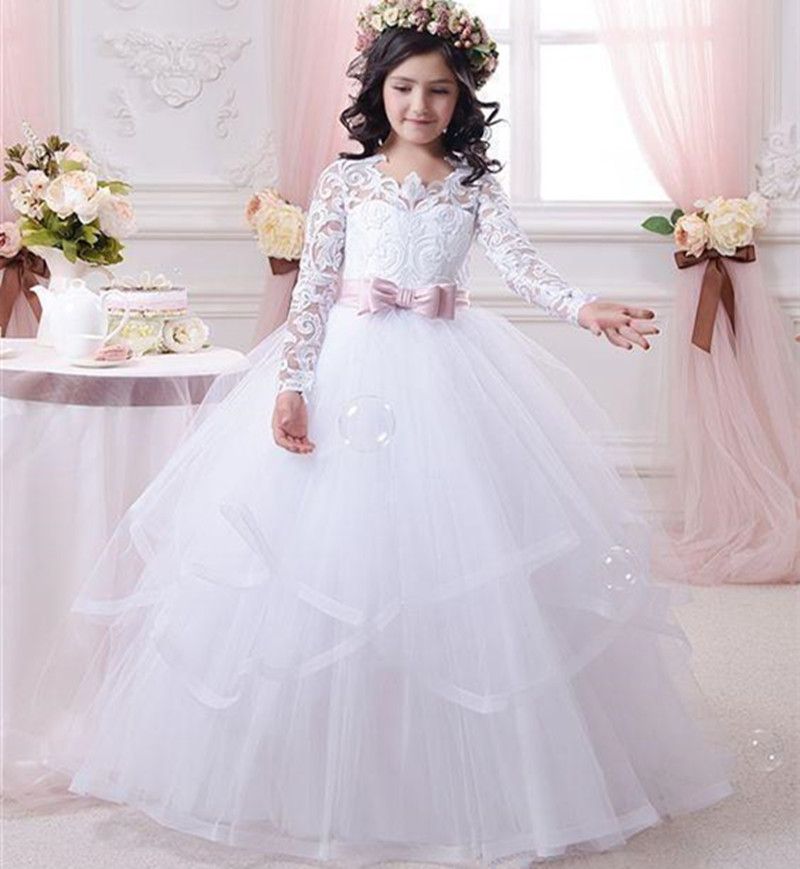 Compre 2020 Barato Blanco Vestidos De Nina De Flores Para Bodas Vestidos De Manga Larga Para Ninas Vestidos De Primera Comunion Vestido De Nina De Baile De Baile De Ninas 0 A