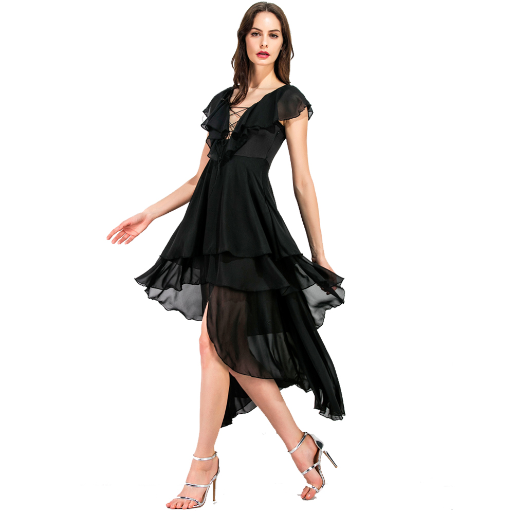 Vestidos Elegantes Para Las Mujeres Volantes Manga Simple Negro Unico Mini Dama Noche Fiesta Coctel Cena Vestido Amazon Es Ropa Y Accesorios