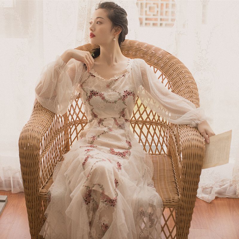 Compre Vestido De Otono Con Negro Europea Palacio Barroco De La Vendimia Impresion De Alta Cintura Largo De La Manga Vestidos De Las Mujeres Para El Partido De Cena Elegante De Compromiso