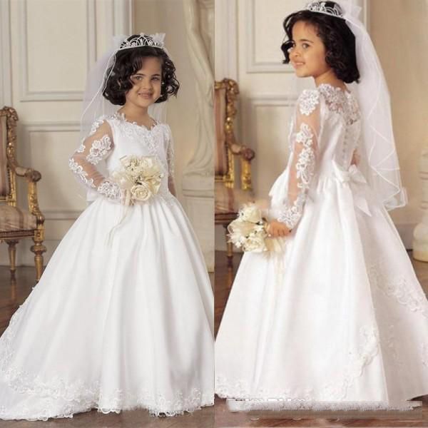 Vestidos De Primera Comunion Blancos Para Ninos Vestidos De Baile Para Nina Vestidos Formales Para Fiesta De Boda Vestidos Largos De Encaje Para Nina Pequena Novia Vestidos Floreados De Nina Aliexpress