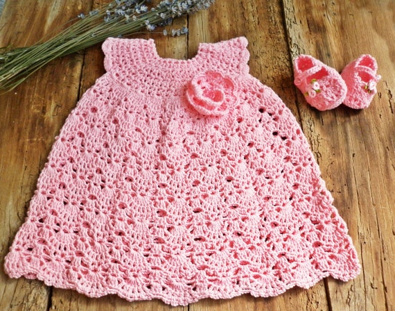 Recien Nacida Nina Vestido De Ganchillo Rosa Primer Vestido Etsy