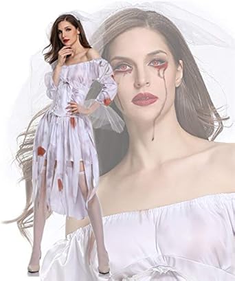 Zyjt Disfraz De Miedo De Halloween Hermana Novia Sangrienta Disfraz De Escenario De Cadaver De Miedo Vestido De Hombro Elegante Decoracion De Fiesta Color A Size Xl Amazon Es Ropa Y