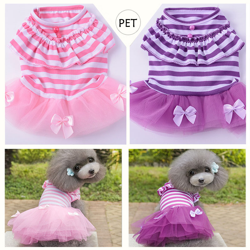Oggid Vestido Para Perro Y Gato Princesa Vestidos Traje De Vestir Falda De Pastel Patron Rayas Con Lazo Moda Y Precioso Suave Y Transpirables 12 Tamanos Perros Vestidos