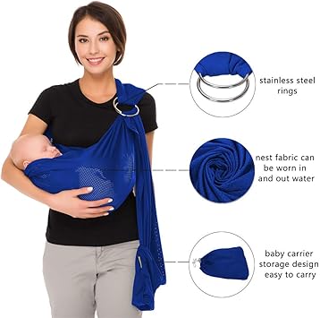 Amazon Com Vlokup Anillo Fular Portabebes Wrap Portabebes De Lujo Ligero Transpirable De Lino Y Algodon Para Bebe Recien Nacido Ninos Y Ninos Pequenos Ajustable Lactancia Ducha Regalo Azul Baby
