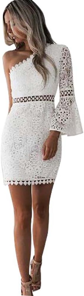 Vestido De Manga Corta Para Mujer Diseno De Faldas Color Liso Con Encaje Recortado En Un Hombro Moderno Para Una Cena Elegante Temperatura De Cultivo Propio Amazon Es Jardin