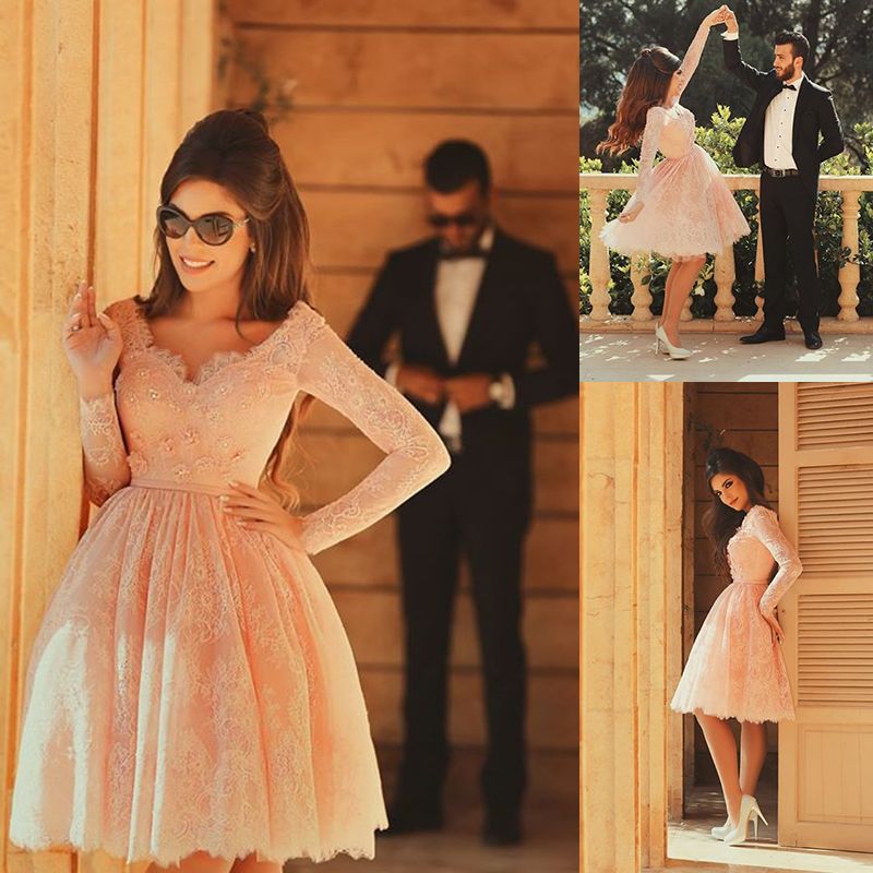 Compre 2016 Vestidos Cortos Para Fiesta Vestidos De Noche Mangas Largas Vestidos De Baile Vestidos De Noche De Encaje Hasta La Rodilla Vestidos De Baile Vestido De Compromiso Hecho A Mano A