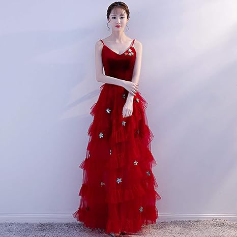 Aibab Vestido De Novia Vestido De Noche Seccion Larga Cena Dama De Honor Escotado Por Detras Rojo Amazon Es Deportes Y Aire Libre