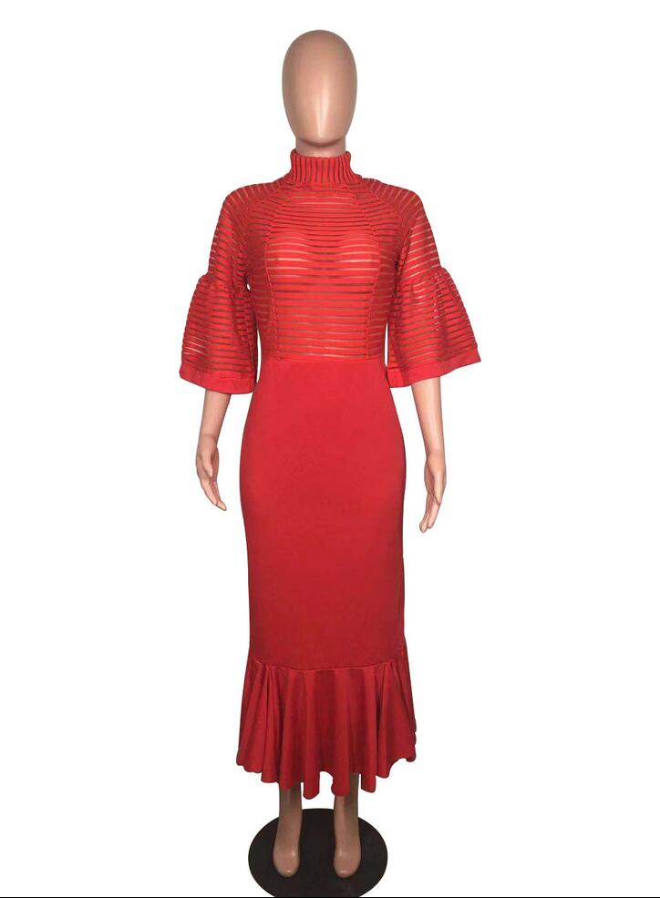 Compre Anadir Manga De La Venta De Division Activa De Gasa Vestido Maxi Vestido Rojo De Alta Division De Tubo Atractivo De La Tapa Del Vestido De La Cena Para El Dia