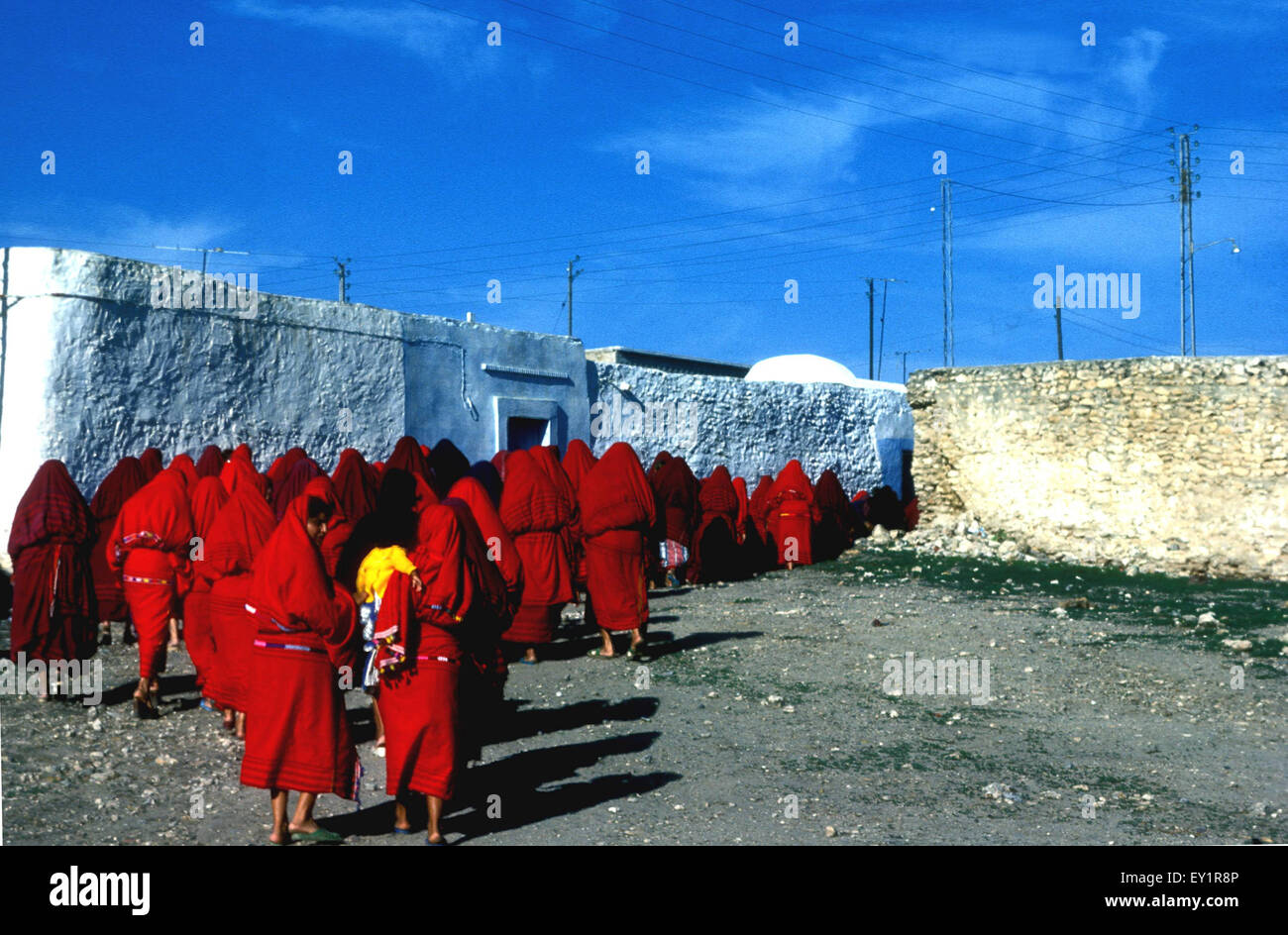 Dos Mujeres Y Un Bebe A Caminar Por Un Camino De Tierra Vestidos De Rojo Y Negro Para El Funeral Que Solo Asistieron Odumase Abrafo Ghana Fotografia De Stock Alamy