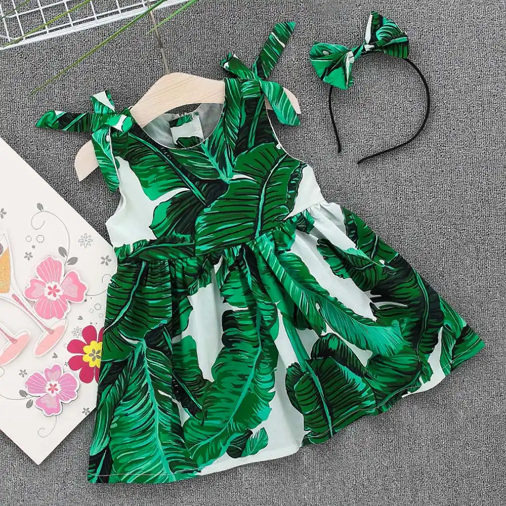 Vestido Verde Con Estampado De Hojas Para Ninas Pequenas Diadema Tirantes Fiesta Playa Verano 2 Uds Vestidos Aliexpress