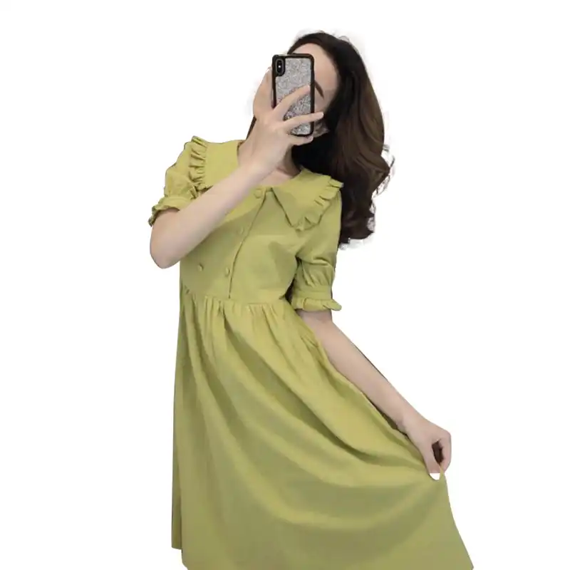 Vestido De Verano Kawaii Acampanado Para La Playa Vestido Veraniego Bohemio Fruncido Tunica Bonita Para Mujer Con Botones Plisados Vestido Verde Sin Mangas Gv249 Aliexpress