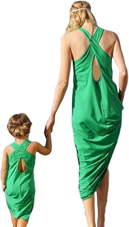 Vestido De Playa Para Madre E Hija Sin Mangas Color Verde Verde Madre M Amazon Es Ropa Y Accesorios