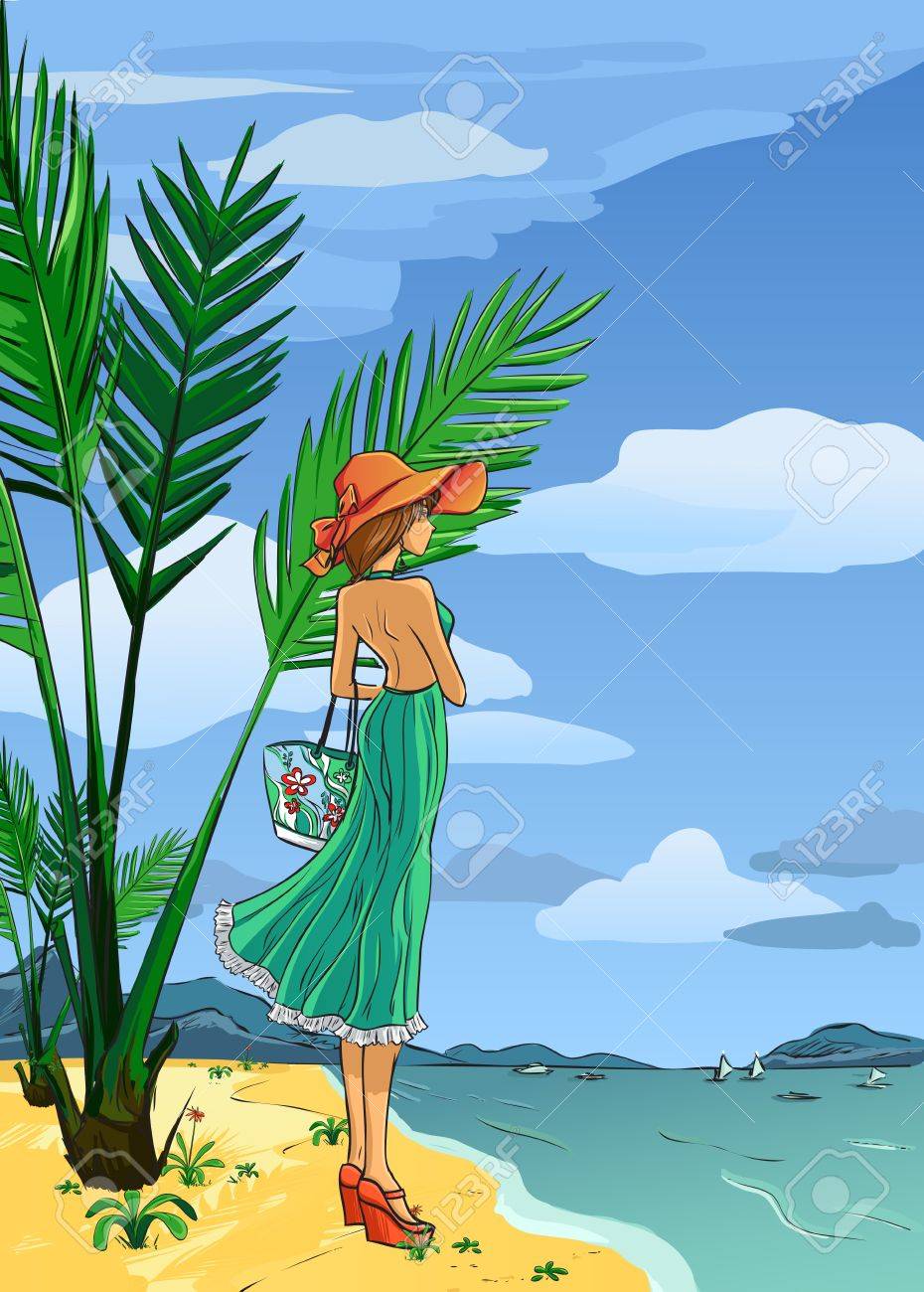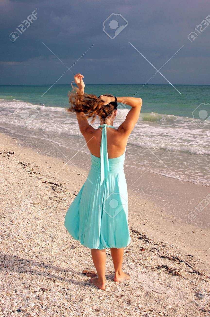 Mujer En Vestido Verde En La Playa Imagen De Archivo Imagen De Playa Verde 37810793