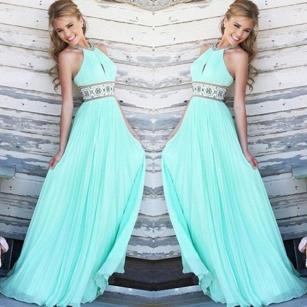 Compre Las Mujeres Verde Menta Gasa Vestido De Tirantes De Playa Del Verano Vestidos De Boda Del Vestido Formal A 25 87 Del Algelooo Dhgate Com