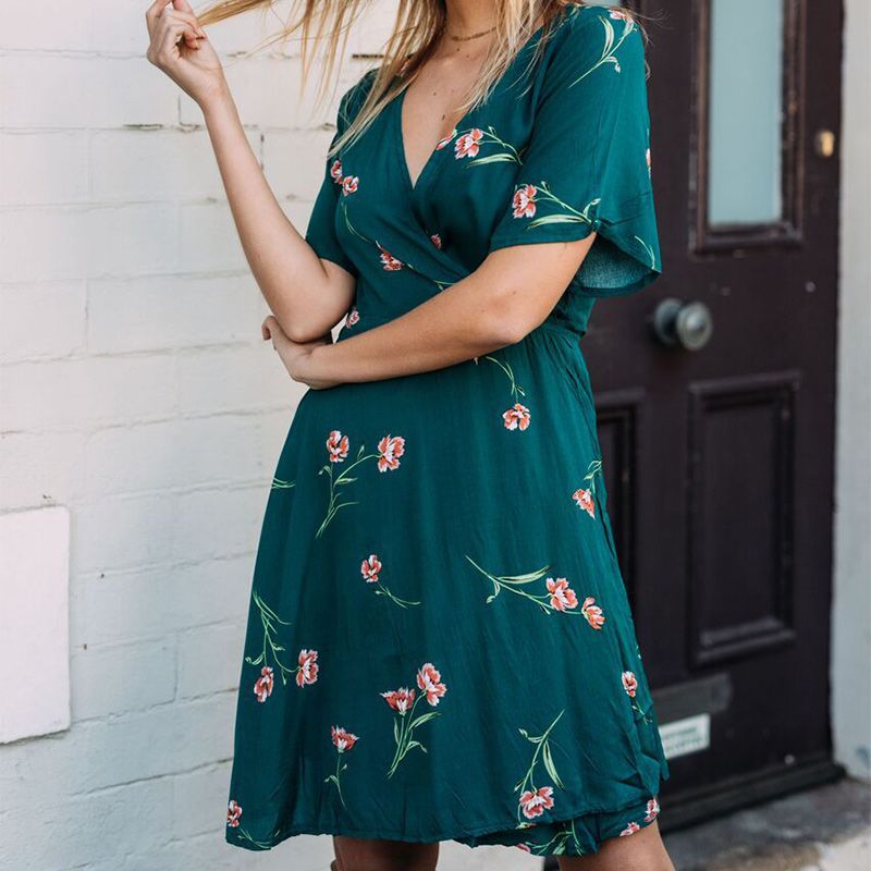 Vestidos Cortos Con Estampado Verde Para Mujer Vestido Corto Bohemio Informal De Verano 2020 Para Playa Y Fiesta Vestidos Aliexpress