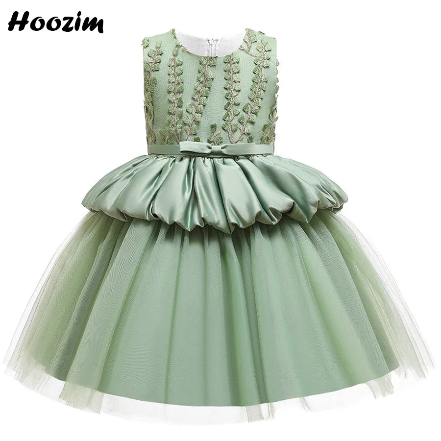 Vestido De Fiesta De Cumpleanos Con Flores Bordado Verde Del Ejercito De Lujo Para Ninas De 4 A 11 Anos De Edad Vestidos De Gala Y Graduacion De Tul Hinchado Con Volantes