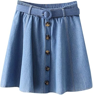 Acebaby Fila De Las Mujeres De Faldas De Mezclilla Con Cintura Color Puro Falda Fresca Pequena Una Palabra Falda De Estudiante Vestido De Verano Para Boda Blancas Sexy Encaje Amazon Es Ropa Y