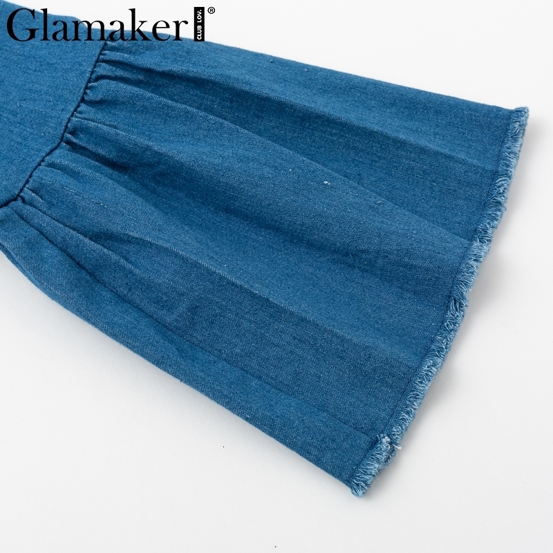 Compre Glamaker Denim Vintage Traje De Mujer Vestido De Manga Acampanada Sexy Vestido De Fiesta Traje Femenino Retro Verano Mas Tamano Vestido Corto Vestidos Sh190910 A 35 96 Del Yiwang04 Dhgate Com
