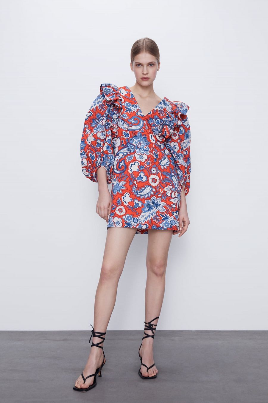 Zara Basic Vestido De Manga Larga Estampado Repetido Sobre Toda La Superficie Ebay