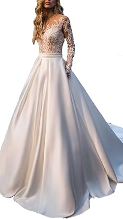 Amazon Com Vestido De Boda De Encaje Para Novia 2019 De Manga Larga Vestidos De Novia Con Bolsillos Moderno Equipada 26w Clothing