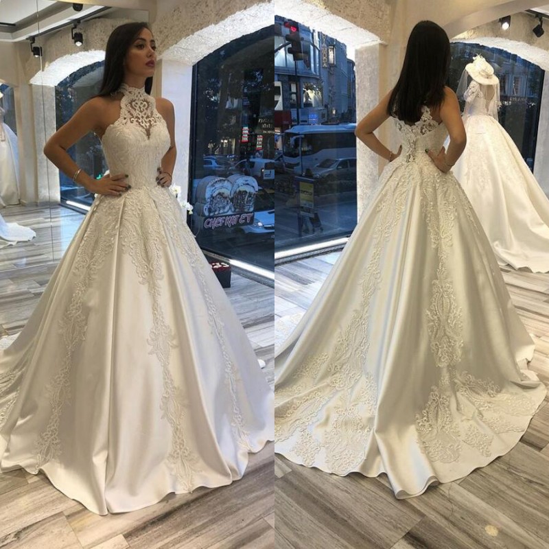 2020 Vestido De Novia Luxry Rebordear Monarca Tren Boda Vestido Con Cuello Barco Encaje Bordado Vestido De Novia Vestido Con Corse De Mairee Oy D902 Vestidos De Novia Aliexpress