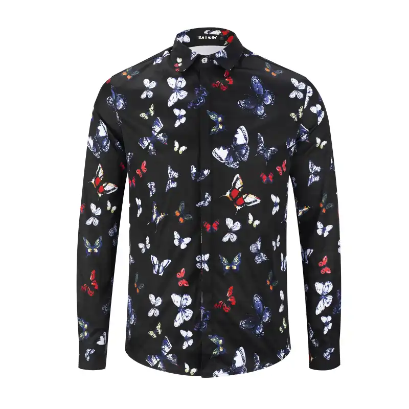 Camisas De Vestir A La Moda Con Estampado De Mariposas Coloridas Para Hombre Camisas De Manga Larga Tops De Hip Hop Blusa De Fiesta Para Hombre Camisas De Vestir Aliexpress