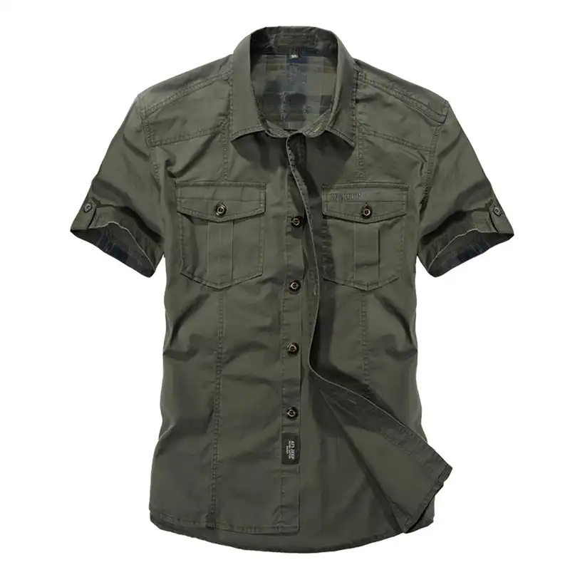 Camisa De Vestir Informal Para Hombre Ajustada Estilo Militar Verde Militar Para Hombre Caqui Para Hombre De Manga Corta De Algodon De Marca Transpirable Camisas Informales Aliexpress