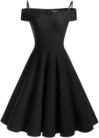 Muadress Vestido Vintage Fiesta De Coctel Con Pin Up Fiesta De Los Anos 50 Anos 60 Rockabilly Halter Off Shoulder Amazon Es Ropa Y Accesorios