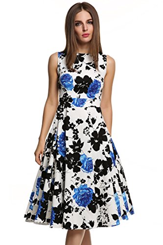 Acevog Mujer Vintage Vestido Anos 50 Falda Impresion Floral Sin Mangas Vestidos De Fiesta Mujer Vestidos