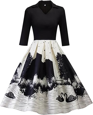 Muadress Mujer Vintage Vestido Coctel Anos 50 Vestido Retro Oscilacion Estilo Clasico Cuello Redondo Amazon Es Ropa Y Accesorios
